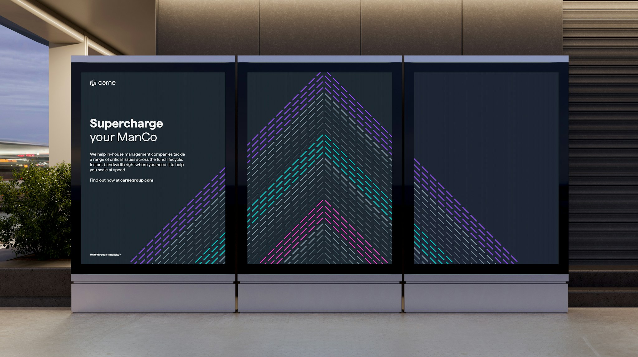 The biggest pain points for Carne’s audience are keeping on top of fragmented regulations and the fear of making a mistake in a world of great complexity. The core brand idea addresses these issues head on. Carne uses technology and knowledge to be a unifying and simplifying force, the place “Where asset management comes together”. “Unity through simplicity” became the core of the brand and guided every aspect of its evolution. Both visually and verbally, the brand continually reinforces themes of connection, unity and togetherness.