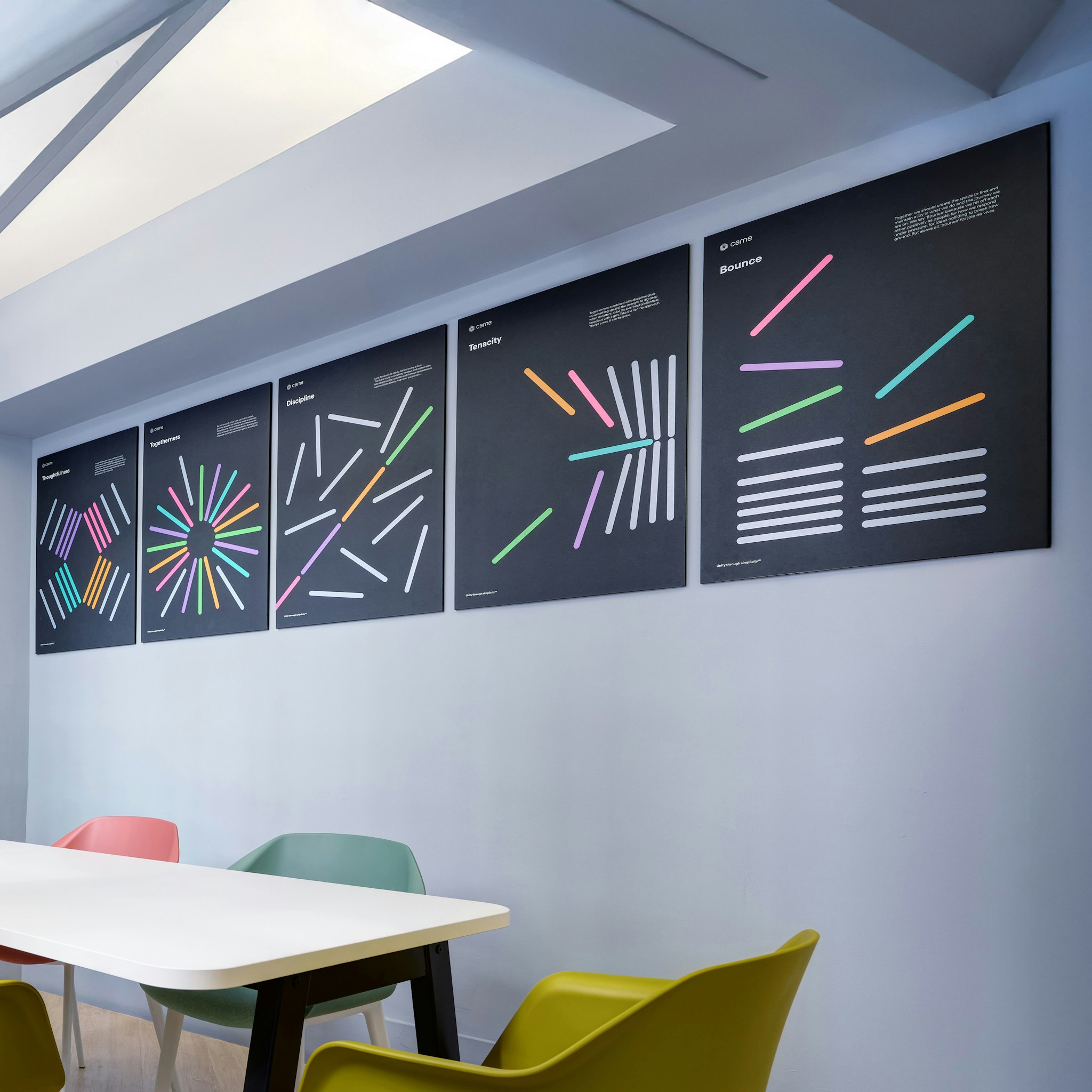 We partnered with an architecture firm to create cohesive branding across their Dublin and Luxembourg headquarters – and later expanded the concept to offices in the Cayman Islands, Germany, Switzerland, London and Jersey. Central to every space was the line language, manifested in textured wall finishes, privacy glazing for meeting rooms and inspiring posters. This consistent application ensured a seamless brand experience across all locations.
