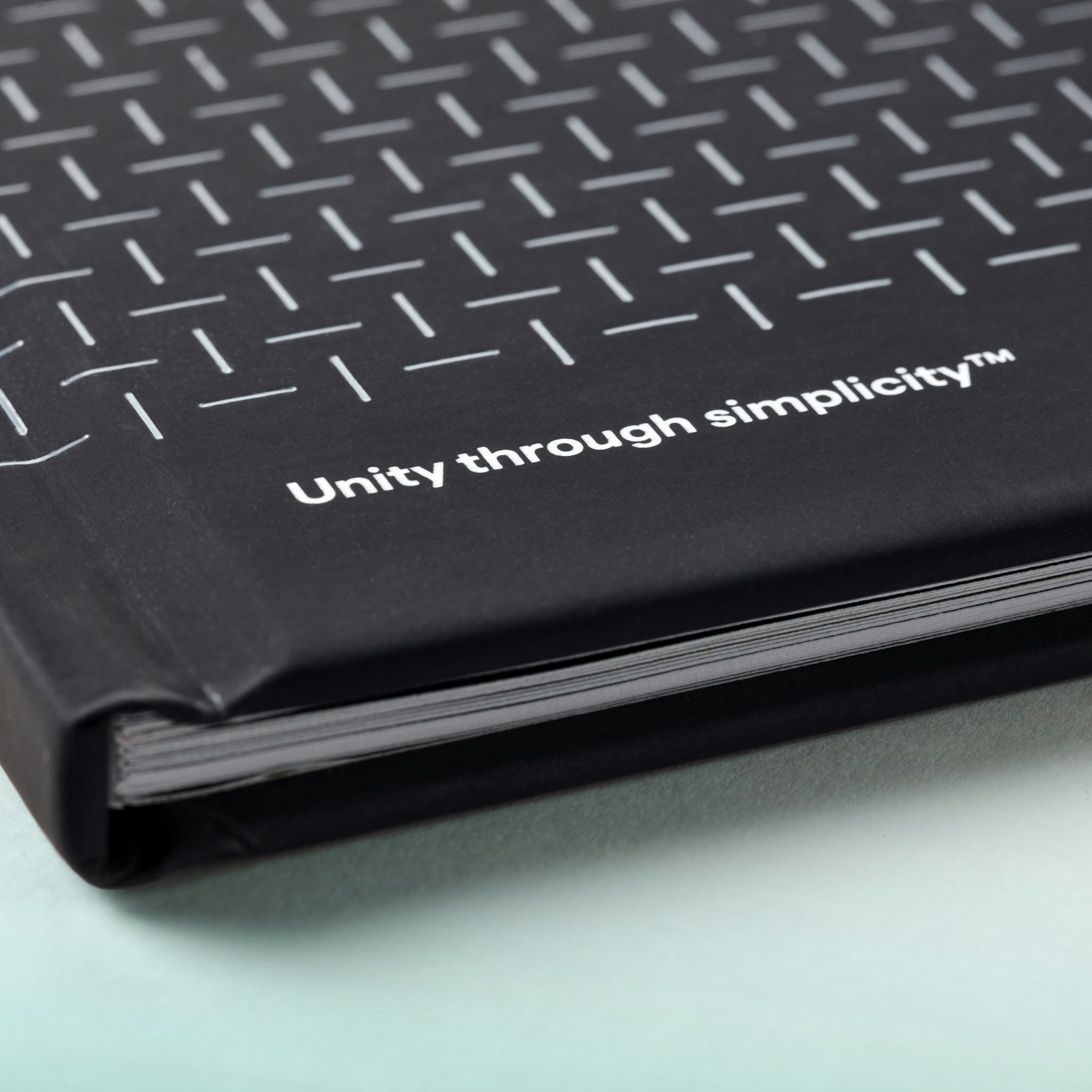 • Masterbrand and tech sub-brand. The “unity symbol uses lines to convey convergence around a single point while the letterforms reflect the simplicity of a single line.
