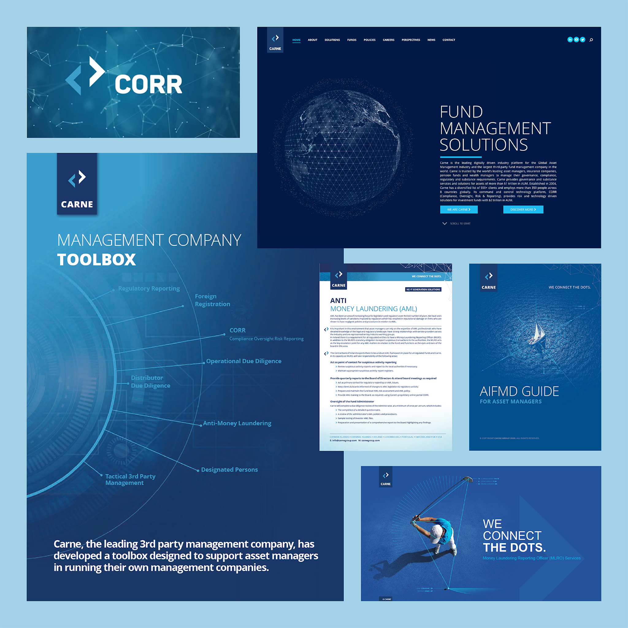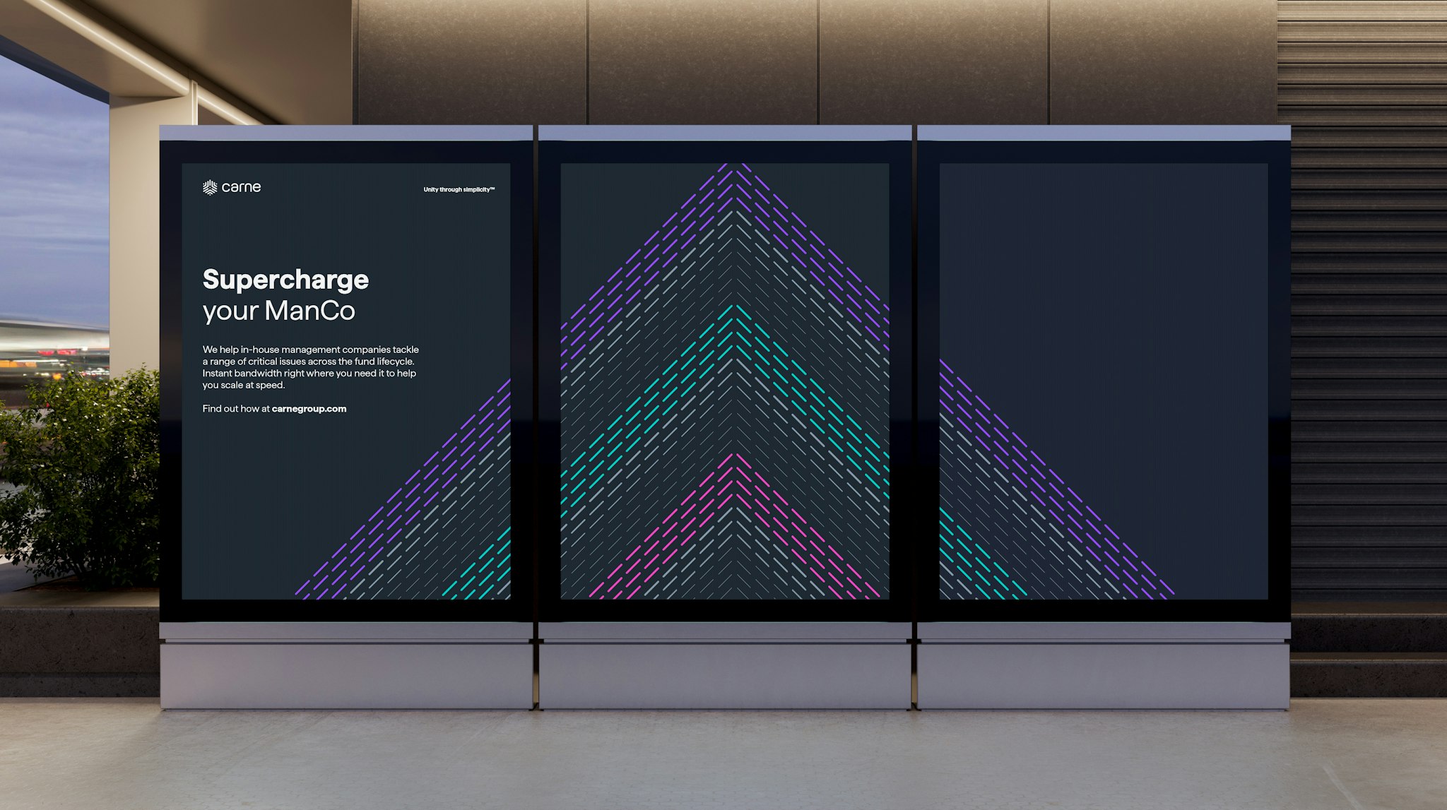 The biggest pain points for Carne’s audience are keeping on top of fragmented regulations and the fear of making a mistake in a world of great complexity. The core brand idea addresses these issues head on. Carne uses technology and knowledge to be a unifying and simplifying force, the place “Where asset management comes together”. “Unity through simplicity” became the core of the brand and guided every aspect of its evolution. Both visually and verbally, the brand continually reinforces themes of connection, unity and togetherness.